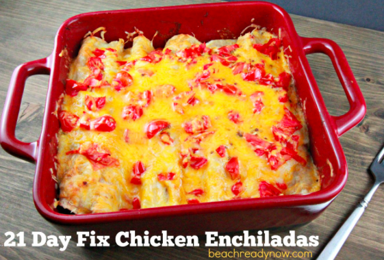 21 Day Fix Enchiladas:  This recipe has a nice little kick to it and a lot of flavor.  Just substitute the chicken for diced turkey.