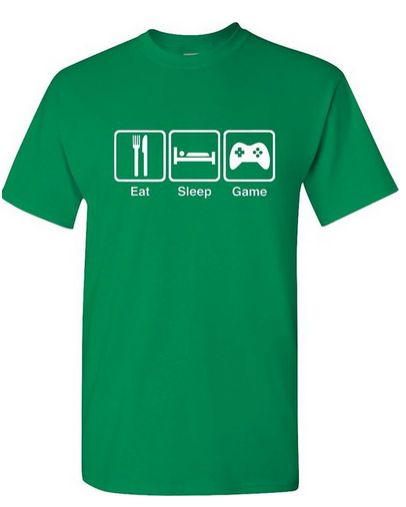 5. This Men’s Eat Sleep Game T-Shirt is available in 9 different colors and tells the highlights of a gamer’s day.