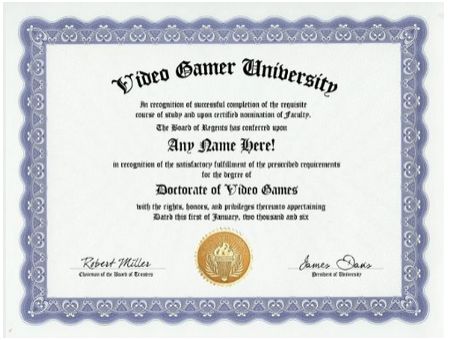 10. Last but not least, any hardcore gamer would love to receive a personalized Doctorate Diploma from the Video Game University. Pick any name and date you choose to go on the certificate.