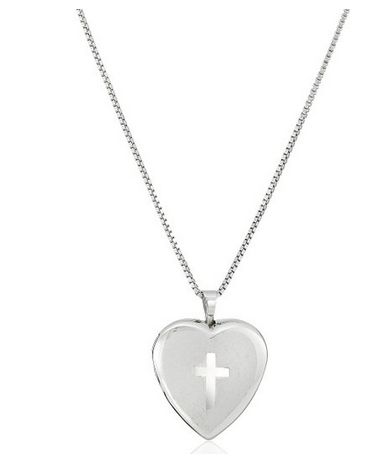 13. Sterling Silver with Etched Cross Heart Locket Necklace, 18″