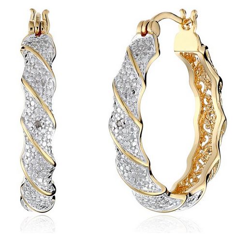 15. 18k Yellow Gold-Plated Two-Tone Diamond Accent Twisted Hoop Earrings