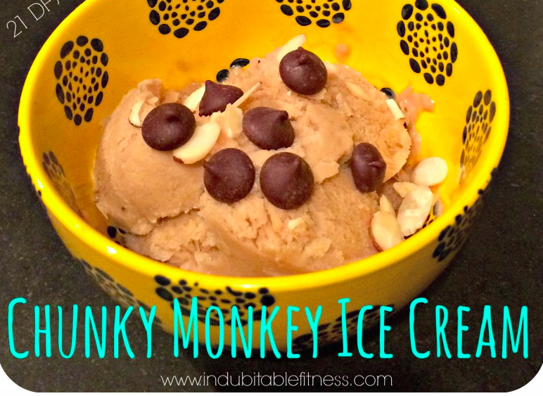 Clean Eating Chunky Monkey Ice Cream: Bananas, almonds, bananas, and chocolate chips make a clean eating healthy version of a popular frozen treat.