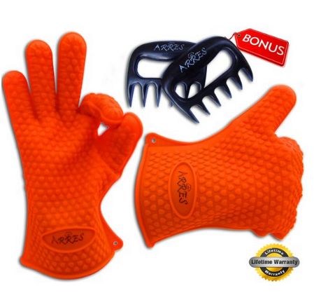11. Silicon Heat Resistant BBQ Gloves with Free Meat Claw: $18.97