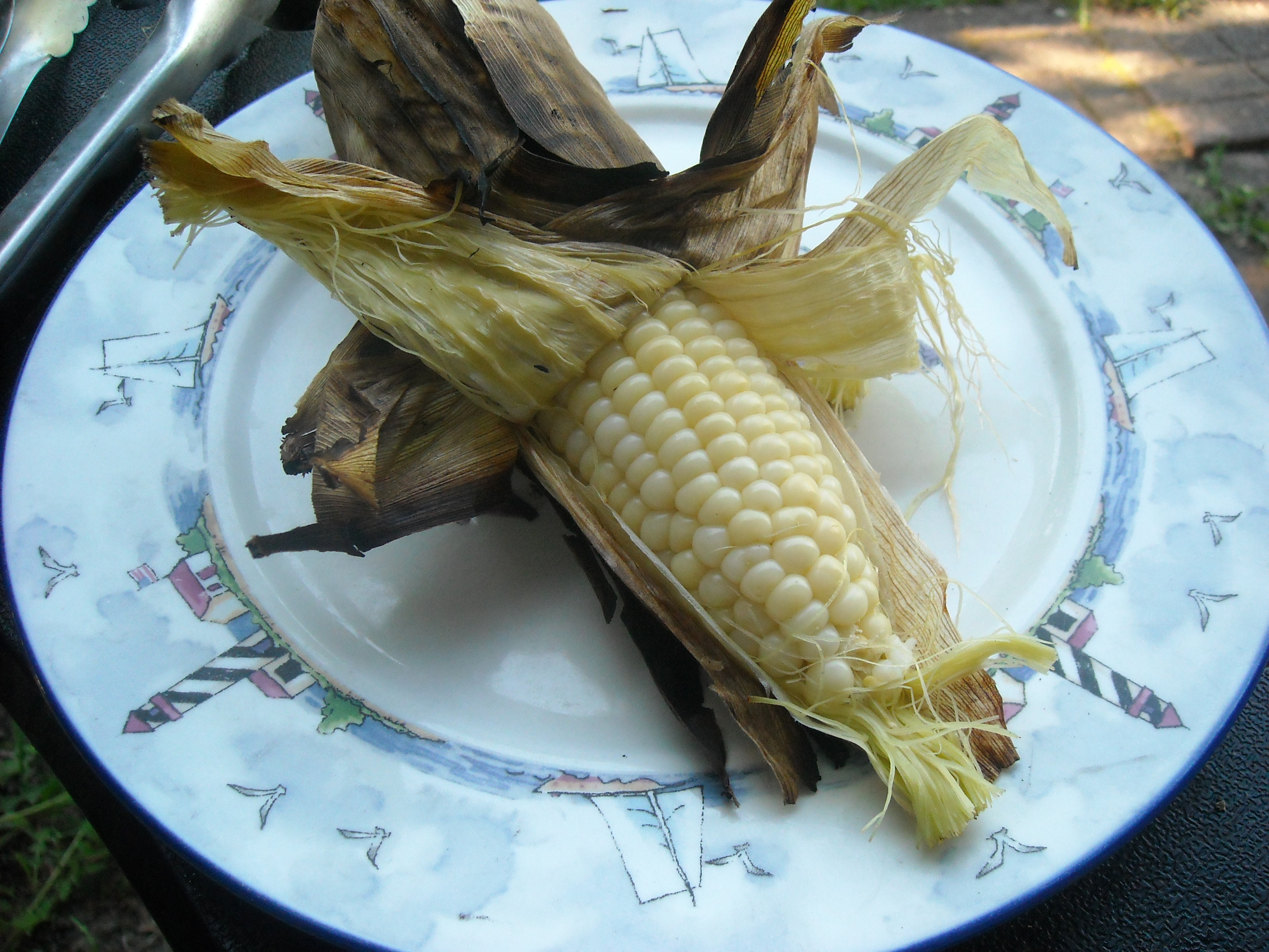 The moisture of the inside husks and silks basically steam the corn inside. Sometimes the some of the corn kernels may be a tiny bit charred but it usually comes out with the perfect even texture. Either way you get this really great woodsy natural flavor. Then you can simply serve it with butter and salt. You also may want to check out these recipes for Herbed Butter and Spiced Butter.