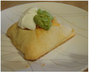 Unroll Pillsbury Crescent Rolls. Separate into 4 rectangles and press the seams together. Place Rectangles on greased baking sheet.