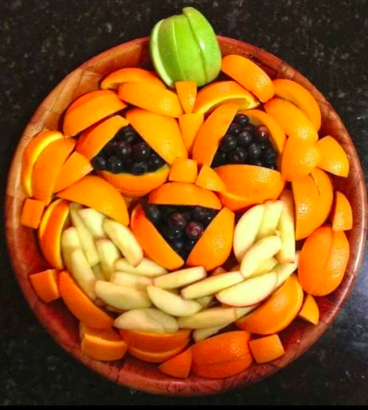 4. Fruit Tray Pumpkin: Oranges, Apples, and grapes served in a really cute way. *source of photo unknown