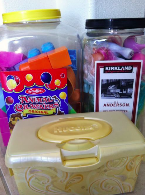 Reuse containers for small toys. Wipes containers are awesome for crayons, Legos, etc. Those Costco containers are large and made of heavy plastic. Don’t throw them away! Find more ideas HERE. Cost: $0