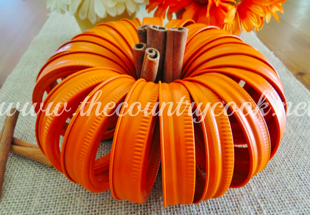 Mason Jar Lid Pumpkin: What a cute way to upcycle old lids.