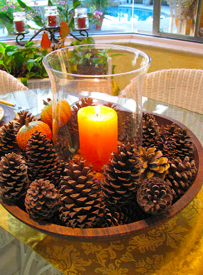 Pine Cone Candle Centerpiece: This centerpiece can be made me things you have around the home, have in your yard, or can be found at the Dollar Store.