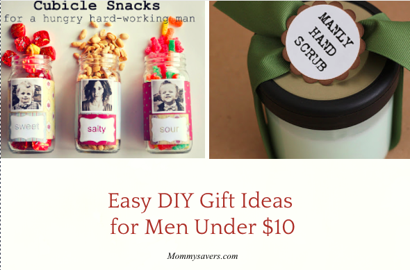 DIY gifs are so nice because they are frugal and they are more personal because of the time taken to make them.  Here are some easy DIY gift ideas for men that cost less than $10 to make.
