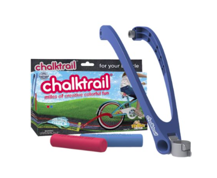 Chalktrail: I know it doesn’t look like much, but this is so much fun! You attach this device to the back of your kid’s bike. Then slide a piece of chalk in and kids can draw while they ride their bikes.