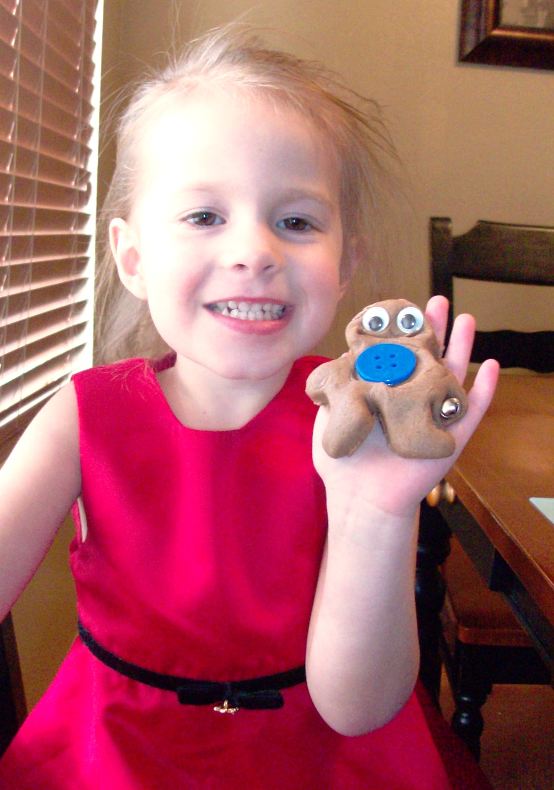 Homemade play dough is a simple and frugal craft for kids, but have you ever thought about giving it as a gift? This year we made DIY gingerbread play dough for Christmas gifts. We packaged it up with a cookie cutter and a collection of gingerbread decorating supplies – bells, googly eyes, big buttons, and foam candy shapes – and it made a great gift for friends! Very frugal, too – all of the supplies were found at the dollar store.