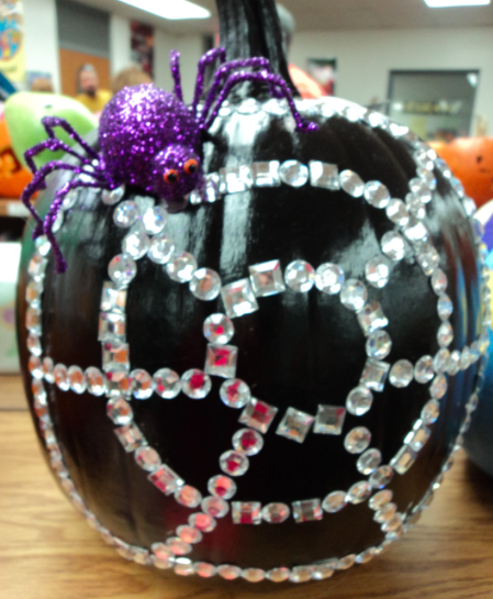 2. Jeweled Spider Web: Nothing like adding a little bling to your pumpkins.