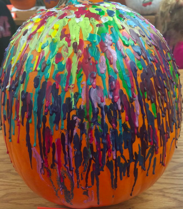 12. Melted Wax Art Pumpkin: This is a great way to reuse old and used up crayons.