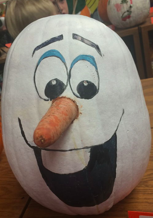 14. Olaf Pumpkin Head: Frozen fans will love this idea. You can even stack 3 small pumpkins and make an entire body.