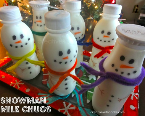 Snow Man Milk Chugs: This is just a simple way to dress up a kid sizes jug of milk. All you need is pie cleaner and multi-colored sharpies.