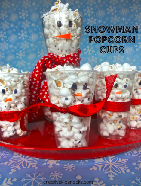 Snowman Popcorn Cups: What a fun snack for a family holiday movie night.