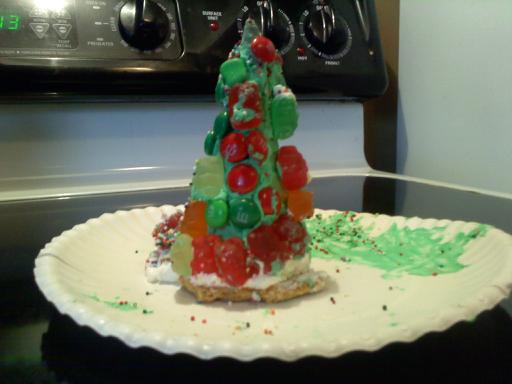 Decorate the tree! (Stick candies and sprinkles onto green frosting as ornaments and Christmas lights)
